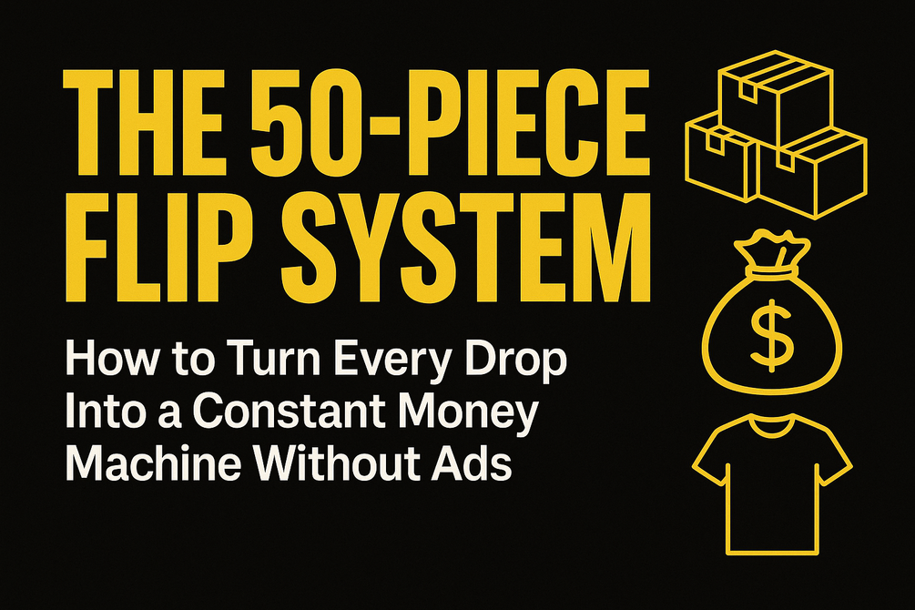 You’ll get the exact 50-Piece Flip System I use to grow every drop without ads , the math, the reinvesting strategy, the pricing game, and the demand formula that keeps your brand selling out.